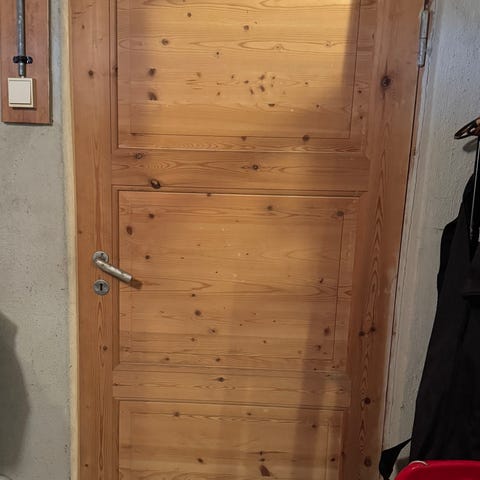 8 heltre dører med karm. Dørene har heltre fyllinger og klassisk profil. Leveres med karmer og hengsler, håndtak og låskasse montert. Egner seg som innerdører i bolig, hytte eller andre innendørs rom der man ønsker en naturlig treoverflate.
