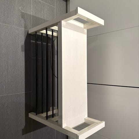 Ellos benk i svart farge. Benken har spiler i setet og en ekstra hylle under for oppbevaring/sko.Passer for eksempel i entré, stue eller soverom som sitteplass eller avlastningsbenk.