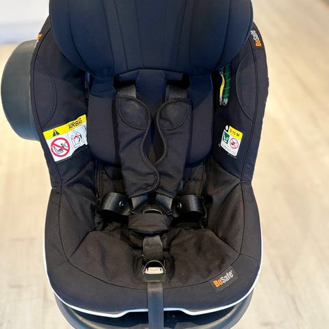 Cybex barnesete i rosa og lilla farge. Setet har høy rygg med justerbar hodestøtte og sidebeskyttelse. Det er utstyrt med Isofix-fester for montering i bilen. Rygg og sete er polstret for økt komfort under bilkjøring.