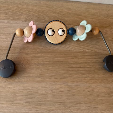 Babybjörn vippestol i Mesh i fargen Grey Beige inkludert leke. Trekket kan enkelt tas av og vaskes i maskin.