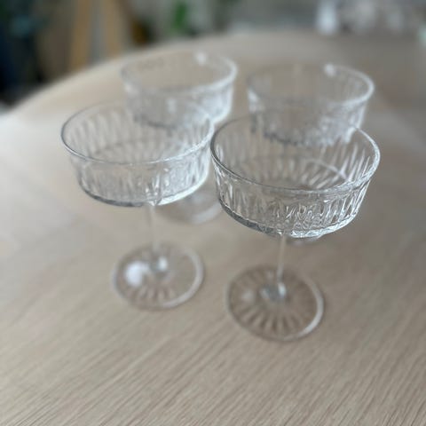 Iittala snacks-/ frukt-/ dessertskåler på stett i frostet og klart glass.