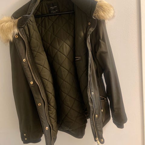 Pent brukt vinterjakke/parkas med uttagbart fôr og fuskepelskrage❄️ Fin som vinter-, vår- og høstjakke!