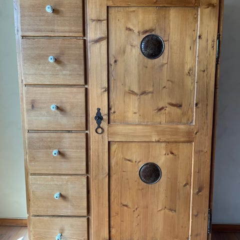 Treskap skap med utskårne figurer brun