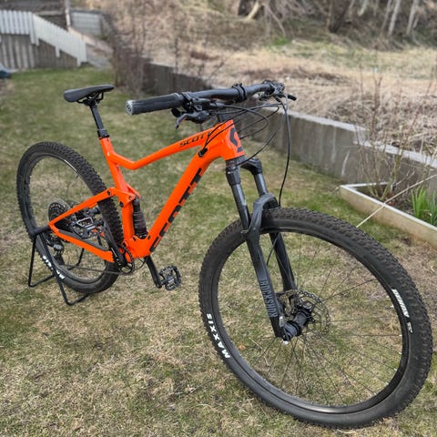 Står på lite brukte Maxxis DHR2 og DHF dekk.