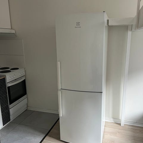 Electrolux kombiskap kjøleskap/fryser i hvit utførelse. Skapet har kjøledel øverst med flere glasshyller, dørhyller og egen hylle for flasker. Nederst er det frysedel med skuffer for oversiktlig oppbevaring av frossenvarer. Baksiden har tradisjonell kjøleribbe og kompressor. Egner seg til vanlig bruk på kjøkken eller som ekstra kjøl og frys i bod eller kjeller.