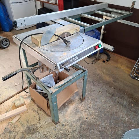Gammel men tung og stødig sag. Separat motor for sag og fres. 3fas motor.