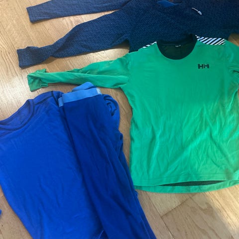 Noen småflekker som kanskje går bort med flekkefjerner, ikke prøvd det. Buksa og de to penere genserne er kun brukt et par ganger