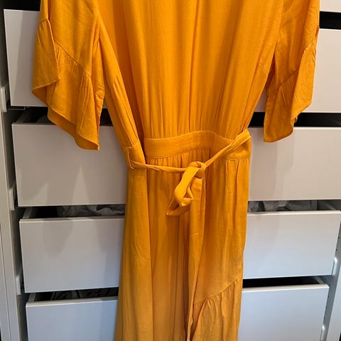 Soaked in Luxury sommerkjole for dame i størrelse L. Kjolen er grønn og laget i polyester. Modellen har v-utringning, kort vide ermer og markert liv med strikk. Stoffet har en vevd struktur med rutemønster som gir et lett og luftig uttrykk. Lengden er ankellang eller nesten ankellang, egnet til hverdagsbruk og sommerlige anledninger.