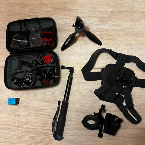 GoPro Hero 10 Black edition actionkamera med diverse tilbehør selges.