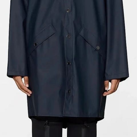 Selger sort regnjakke fra Rains. Str. S. Passer til meg som bruker str. 38 eller M. vanligvis. Modellen er unisex. Regnjakken fremstår som ny og er kun brukt ett par ganger. Nypris 1100 kr. Farven er dyp sort. Bildene fra nett har korrekt fargegjengivelse.
