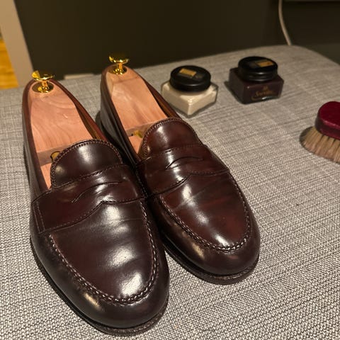 I'm selling these loafers, which I bought with Skomaker Dagestad on 24.01.2026. They have been worn for three hours in total, and ended up being a half size too small for me.