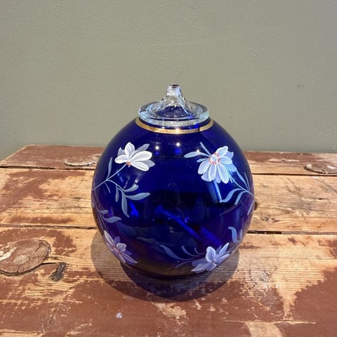 Den er i meget god stand og egner seg veldig godt som dekorasjon i hjemmet. Lampen er tung og høyde er 13 cm.