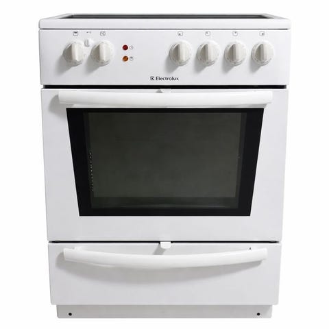 Electrolux keramisk komfyr. Komfyren har keramisk topp med tradisjonelle brytere på fronten og stekeovn med glassdør. Egner seg til vanlig matlaging og baking på kjøkkenet. Ytterligere spesifikasjoner som mål, effekt og funksjoner kan variere mellom ulike modeller i denne serien.