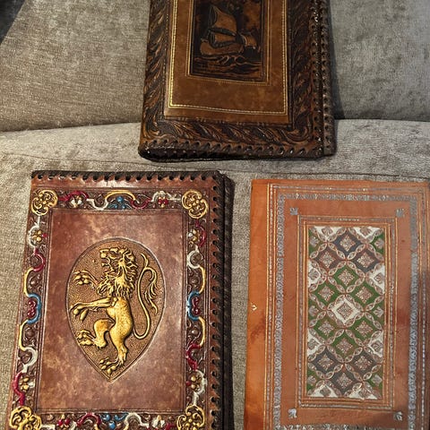 bokomslag, skinnbokomslag, bokcover, boktrekk, bokbeskytter, ekte skinn, lær, italiensk skinn, made in italy, håndlaget, håndverk, vintage, klassisk stil, luksus, eksklusiv, burgunder, vinrød, dekorert skinn, preget skinn, løvemotiv, våpenskjold, antikk stil, boktilbehør, gaveidé, gave til bokelsker, samlerobjekt, interiør, kontordekor