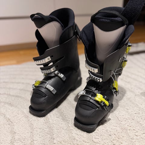 Head alpinstøvler i størrelse 27.5 i svart farge. Støvlene har fire justerbare spenner og power strap øverst for bedre tilpasning rundt leggen. Passer til bruk i alpinbakke med vanlige alpinbindinger. Ytterskall og innerstøvel er laget i syntetiske materialer som gir støtte og stabilitet ved kjøring på ski.