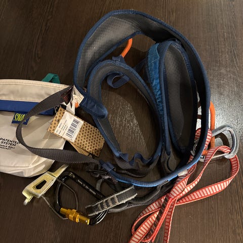 Mammut klatresele med kalkpose, taubrems, karabin og softsling. Lite og pent brukt . Str m - xl . Kan sende om kjøper betaler frakt.