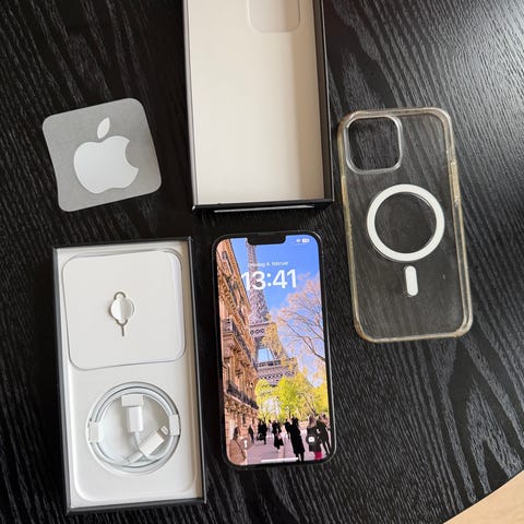 Har köpt ny telefon och ska därför sälja min iPhone 13 Pro Max (128 BG). Fungerar som den ska med några repor på skärmen samt på baksidan (se bilder) men inget som syns så mycket vid vanlig användning. Batteriet var på 76% hälsa innan jag återställde telefonen och har kapacitet för max prestanda.
