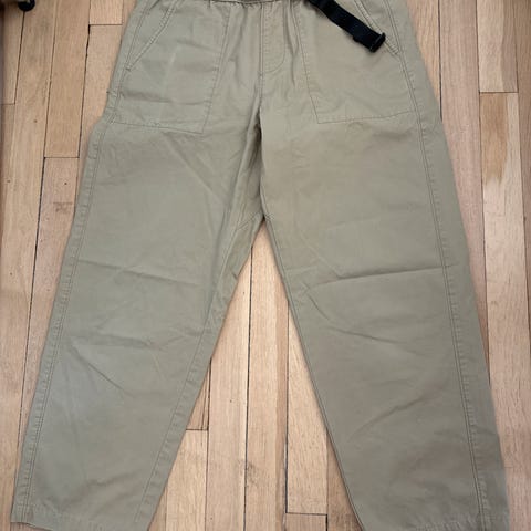 Selger de fine og komfortable Gramicci-buksene mine fordi de ble hakket for korte til meg! Kun brukt 1 gang, kjøpt i januar. Jeg er 173 til referanse 👆🏼 Str. er M (Asia L). Jeg bruker vanligvis S men M passer om du vil den skal sitte litt løst 🫶🏼 Nypris 1300.