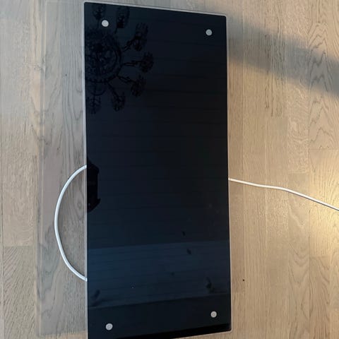 Panelovn er 1500 watt, følger med støpsel og veggfeste.