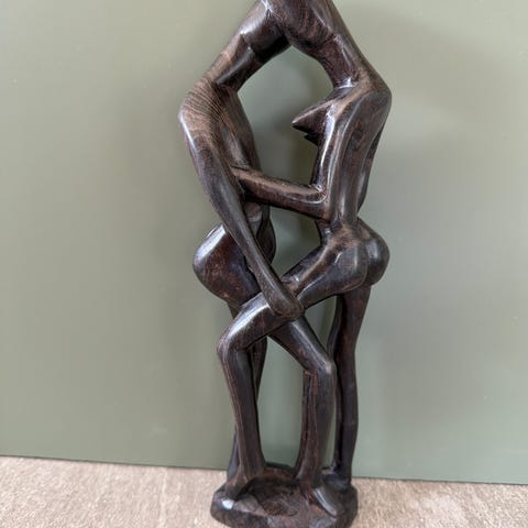 Dekorativ skulptur i mørk tre.