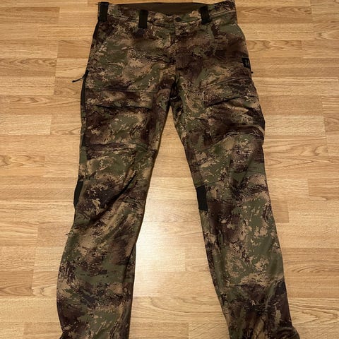 Veldig lite brukt Norrøna Tamok Gore-Tex Pro LTD turbukse i kamuflasjemønster. Buksen er laget i Gore-Tex Pro-materiale som gir vanntett og vindtett beskyttelse samtidig som den er pustende. Den har flere lommer og forsterkninger på utsatte områder. Passer til friluftsliv og bruk i krevende værforhold.