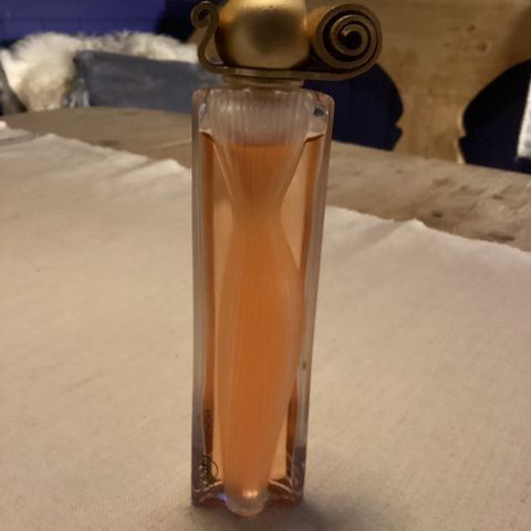Givenchy Organza First Light parfyme. Eau de toilette i original flakong med dekorert kork og tilhørende eske. Flasken er laget i glass og inneholder en lys gul duft. Produsert i Frankrike. Passer som parfyme til daglig bruk eller ved spesielle anledninger. Denne er discotinued og vanskelig å få tak i, spesielt så full. Bruker bare Norgespakke pga raskhet, forsikring, sporing for begge hele veien.