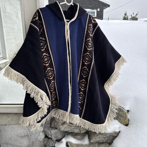 Lett, myk og varm poncho med rund hals. Til kontoret, pent antrekk når det er litt kjølig eller til kosestund i godstolen med film, bok eller håndarbeid. Lite brukt da jeg har flere.