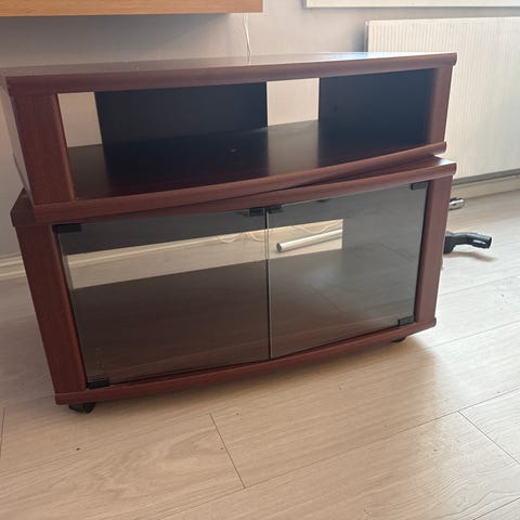 TV-benk i hvit utførelse.