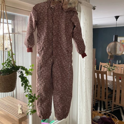 Reima parkdress for jente i størrelse 122. Dressen er i lilla polyester med blomstermønster og avtakbar hette. Den har glidelås foran og strikk nederst på bena. Refleksdetaljer på bena for bedre synlighet. Materiale: polyester. Egnet som yttertøy for barn i størrelse 122.