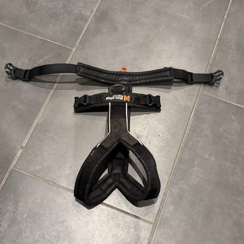 Non-stop sele til hund i svart farge. Selen er utformet for å gi hunden god bevegelsesfrihet og jevn fordeling av trekkraft. Egnet til tur og aktivitet med hund. Justerbare stropper gjør det mulig å tilpasse passformen til hunden. Materialet er laget for å være slitesterkt og komfortabelt for hunden under bruk.