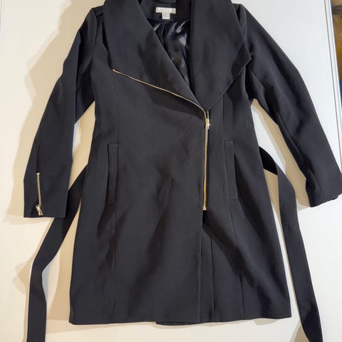 Kåpe i str 40. Kåpen har kontrastfelt i melert svart og hvitt foran og bak, som gir et tofarget uttrykk. Lang modell med lange ermer og enkel lukking foran. Passer som ytterjakke i overgangssesonger eller milde vinterdager.
