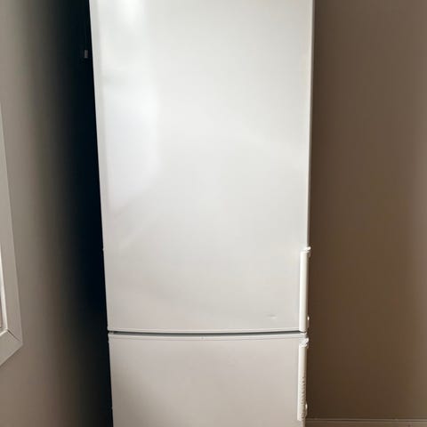 Justerbare glasshyller, grønnsaksskuff, dørhyller og LED-belysning. Passer godt til kjøkken eller bod.