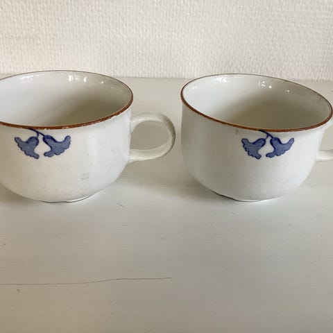 To koppar frå mønsteret Veronica. 11,8 cm diameter ytterkant, 6,4 cm høge.