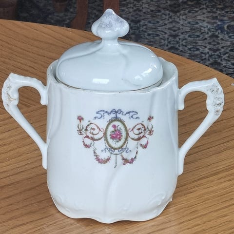 12.stk kopp, skål og tallerken, pluss fløtemugge og sukkerskål.
