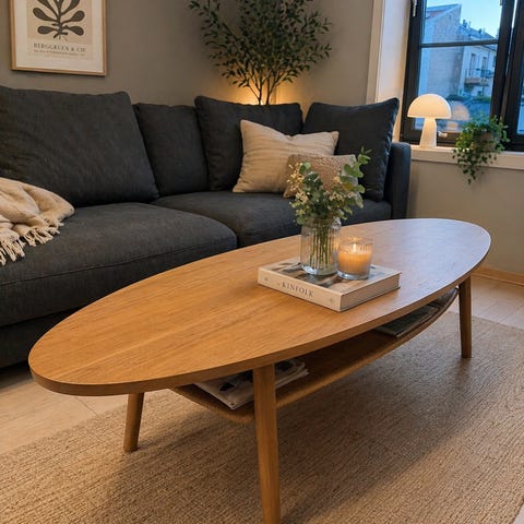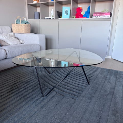 Pent salongbord fra Gubi. Glassplate på sort understell. Bordet er i svært god stand. Bruksmerker kun i form av små riper i glasset som ikke er synlige ved bruk.