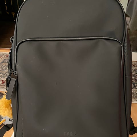 Rains ryggsekk i vanntett materiale. Sekken har klaff med stropp og krok-lukking foran. Justerbare skulderstropper bak. Passer til daglig bruk, skole eller jobb, med plass til nødvendigheter som pc, dokumenter og personlige eiendeler.