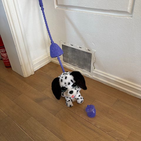 Den logrer med halen og går som en hund når du skyver den fremover, slik at turen føles som en tur med en ekte levende hund!