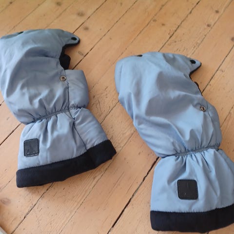 Kjøpt fra barnas hus brukt kort tid i en sesong veldig god stand veldig gode og varme votter kan kobles til barnevognen sånn at du slipper å ta dem av og på hele tia veldig fin grønn farge og svart pels rundt armen.