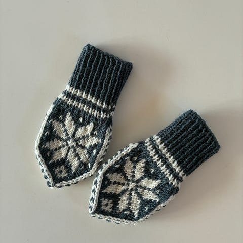 Nye votter strikket i Sandnes tynn merinoull.