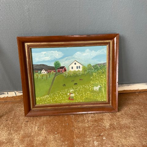 Maleri vinterlandskap med rådyr i gullfarget ramme