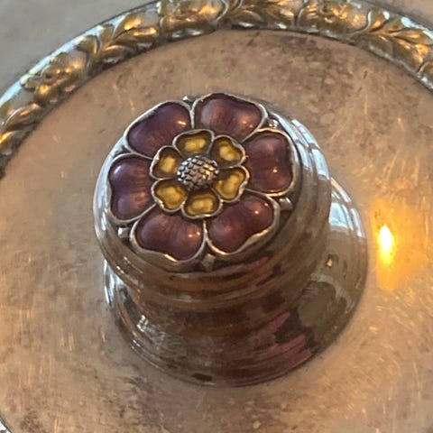 Emaljert smykkeskrin og lighter.