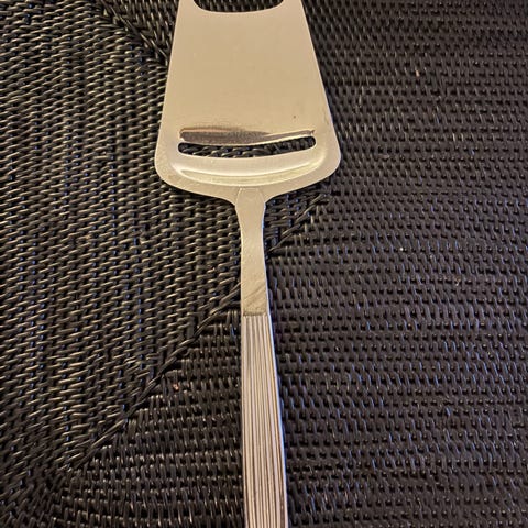 Ostehøvel i finsk kvalitet og design i 18/8 rustfritt stål. Ingen skader, er blank, men noe bruksspor. Har riller på skjærekanten for fint mønster på osteskivene.