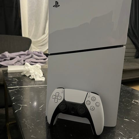 Playstation 5 Slim Digital versjon med 1Tb lagring. Følger med kontroller og strømkabel. Har ikke kvittering på den dessverre.