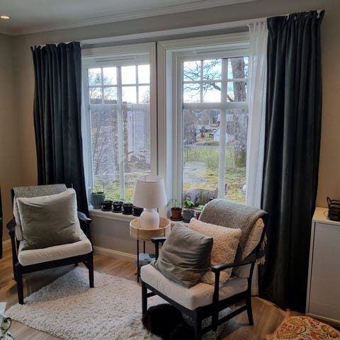 Ønsker å kjøpe 2 lengder sennepsgule velourgardiner. Helst kjøpt på Rusta, da jeg har 4 lengder fra før.