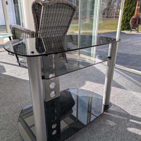 TV-benk i glass med hjul.
