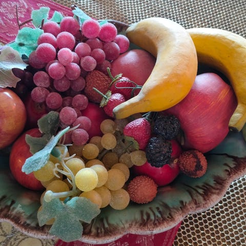 Stor skål med med flere kunstige drue klaser ++ selges.