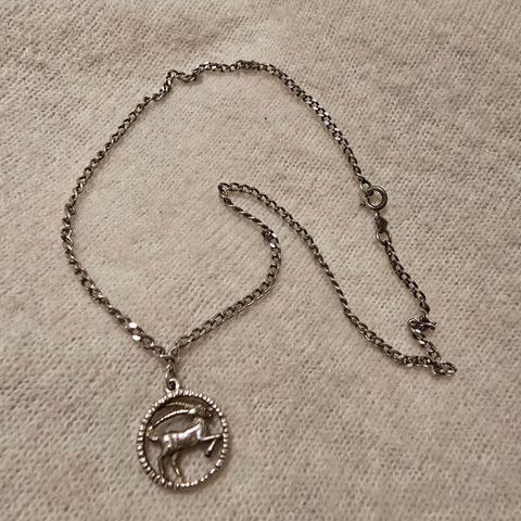 «Steinbukken» stjernetegn smykke til barn. Aldri blitt brukt! Smykke i gull,men kjedet er vel bare gullbelagt..,tror jeg?