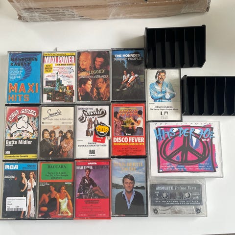 Kassettbibliotek album og kofferter for oppbevaring av lydkassetter.