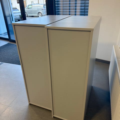 Metall arkivskap med 5 solide og store skuffer i grå farge med patina/ litt overflaterust. Skapet har uttrekkbare skuffer med håndtak i metall og etikettfelt på fronten av hver skuff for merking av innhold. Egnet til oppbevaring av dokumenter, permer eller annet kontorutstyr eller verktøy i verksted eller garasje. Skapet er frittstående.