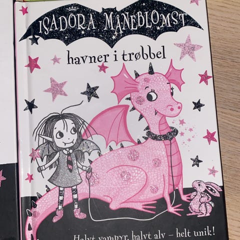 Harriet Muncaster Isadora Måneblomst drar på skoletur barnebok. Innbundet bok om Isadora, som er halvt vampyr og halvt alv. Historien følger Isadora på skoletur, med temaer som vennskap, skole og fantasi. Boken har illustrasjoner i svart, hvitt og rosa og passer for barn som liker lettleste, illustrerte bøker med humor og overnaturlige innslag.